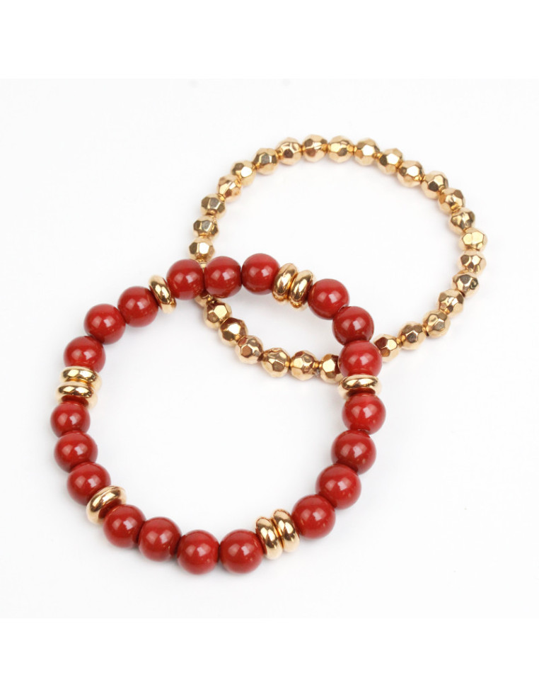 Set de dos pulseras elásticas, una de bolitas de vidrio, otra de piezas pasantes de CCB dorado.