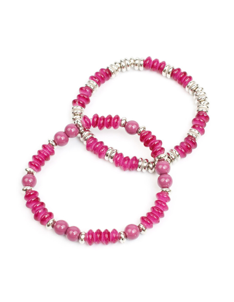 Set de dos pulseras elásticas de cuentas de vidrio, bolitas de vidrio y pasantes de CCB níquel.