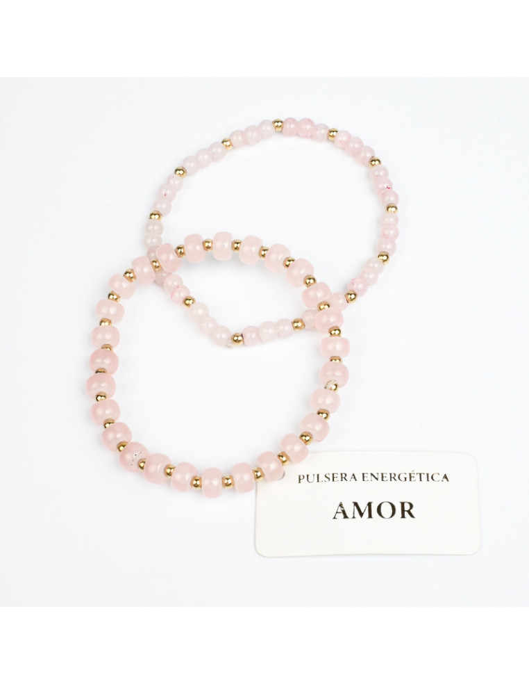 Set de dos pulseras energéticas de cuentas de vidrio y pasantes de CCB dorados.