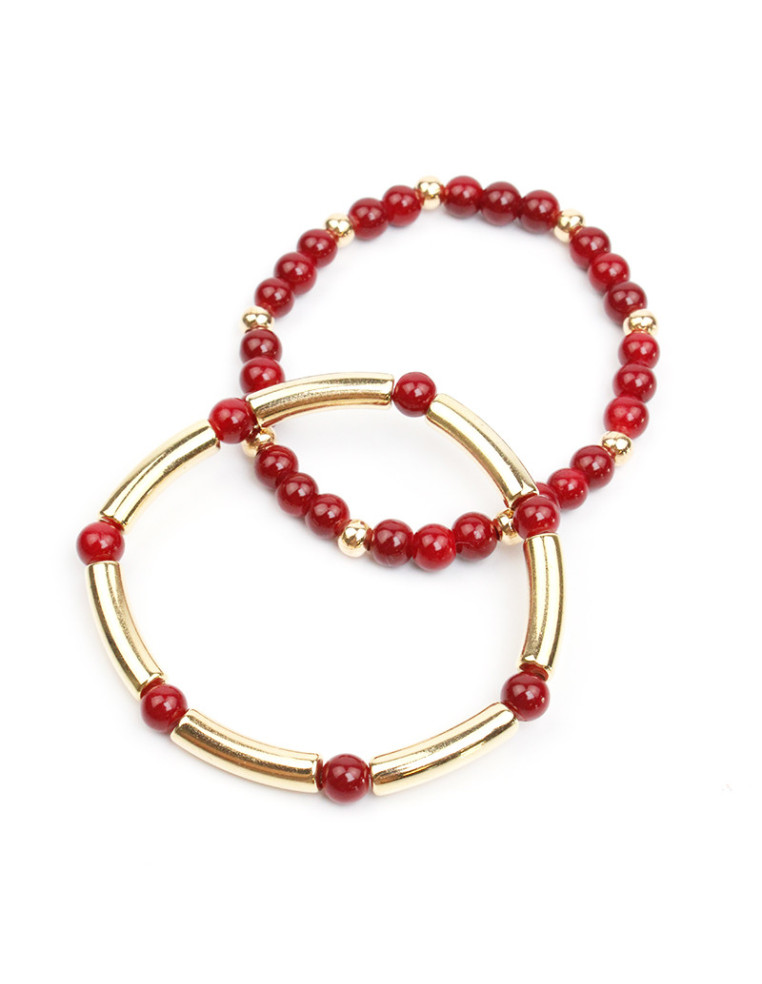 Set de dos pulseras elásticas, de bolitas de vidrio y pasantes de CCB dorados.
