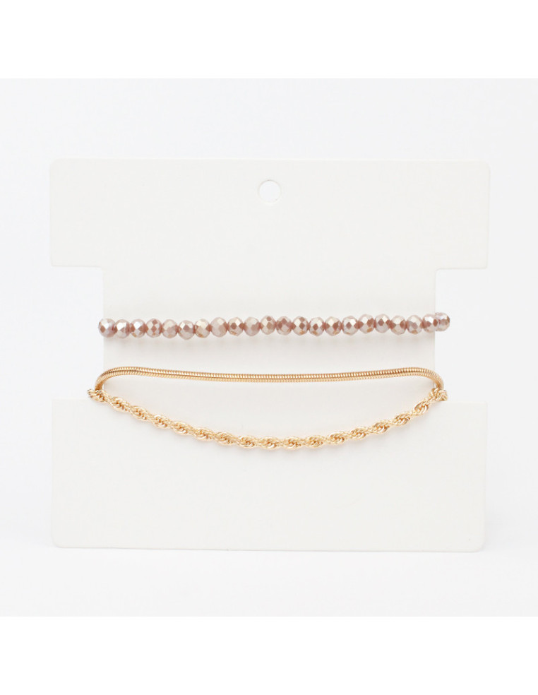 Set de pulseras, una elástica de rocas de cristal, otra de doble cadenas de diseño.