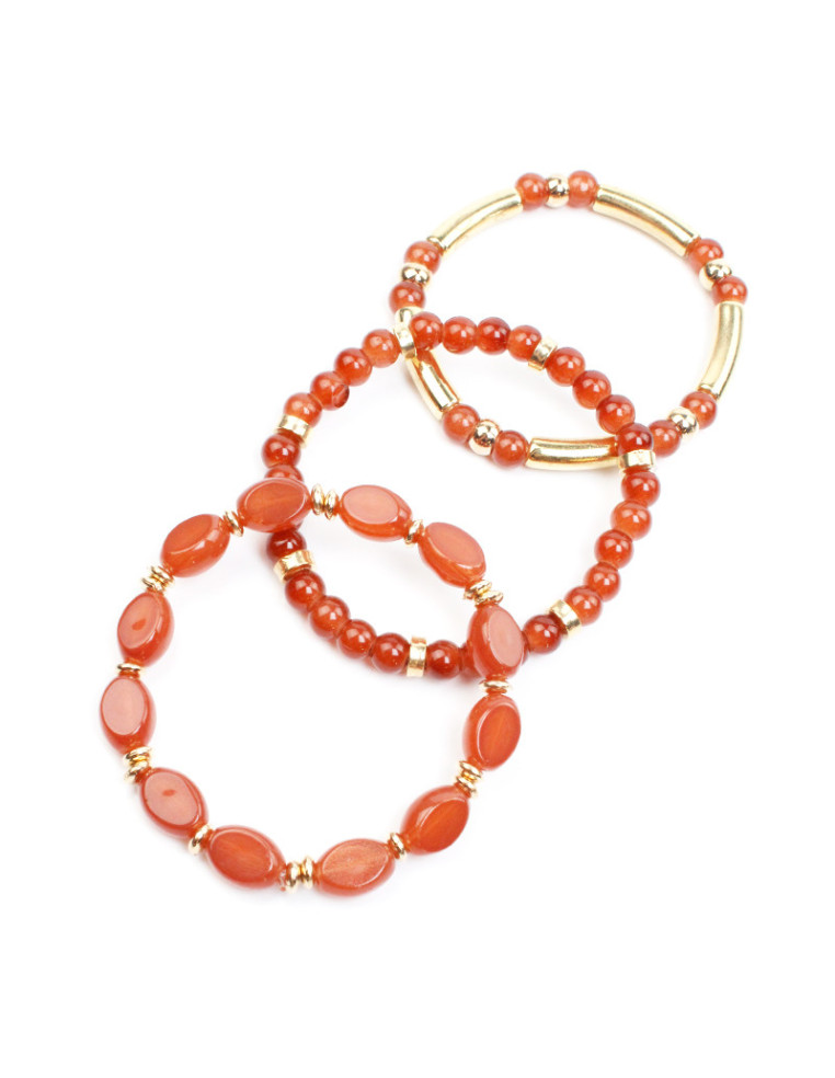 Set de tres pulsera elásticas de cuentas de vidrio con pasantes de CCB dorados.