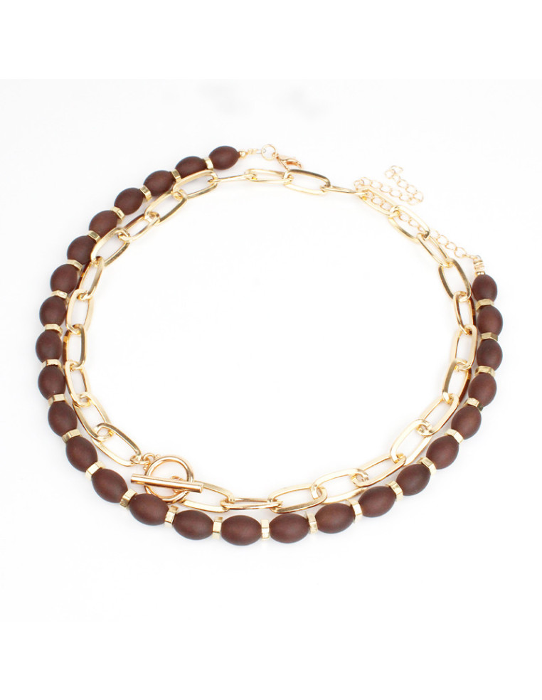 Set de dos collares de lenga flexible intervenida con cuentas de vidrio exclusivas y cadena diferenciada con cierre marinero frontal.