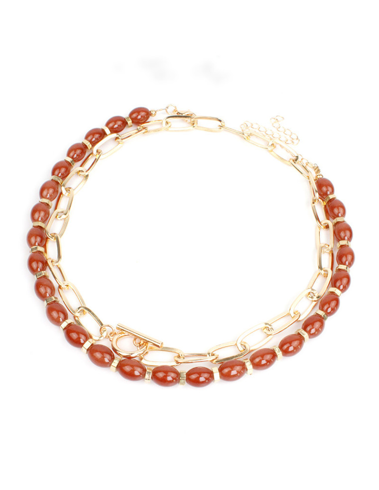 Set de dos collares de lenga flexible intervenida con cuentas de vidrio exclusivas y cadena diferenciada con cierre marinero frontal.
