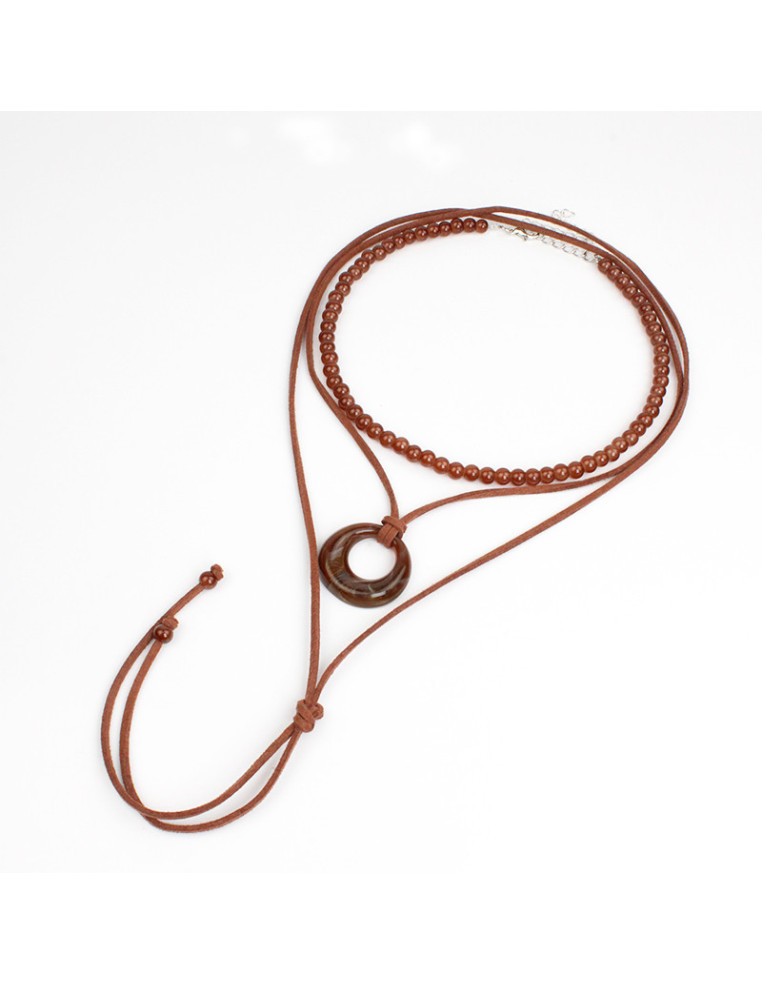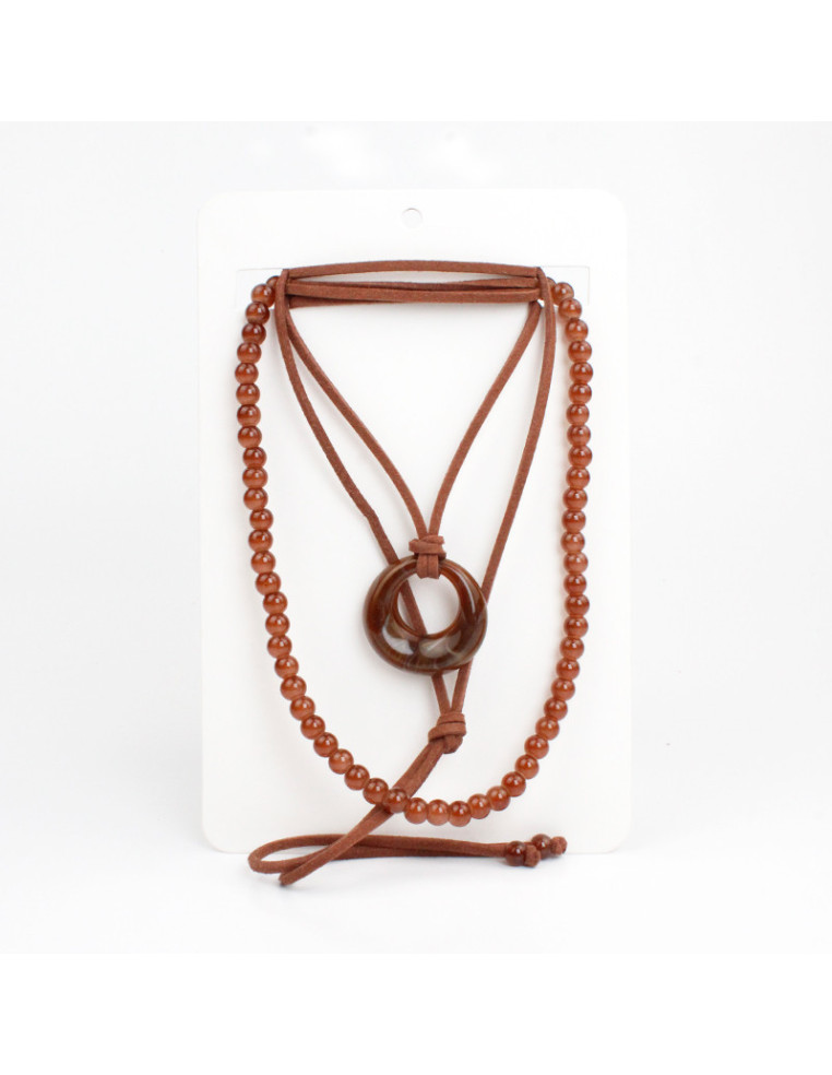 Set de dos collares, lenga flexible con cuentas de vidrio exclusivas y collar de gamuza de múltiples vueltas intervenido con dije de acrílico.