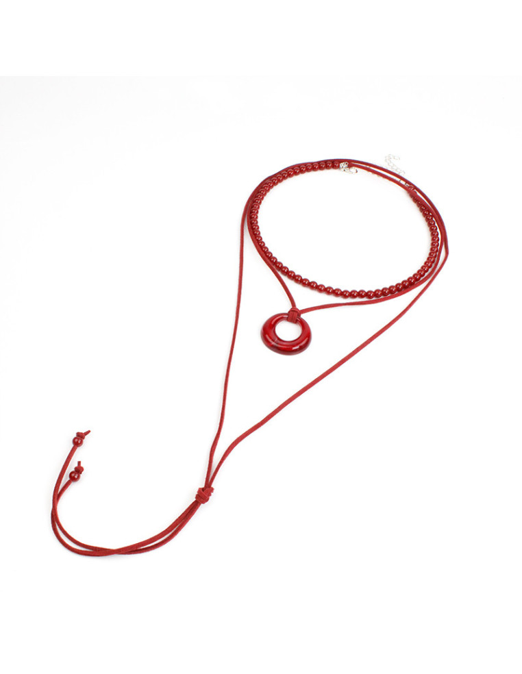 Set de dos collares, lenga flexible con cuentas de vidrio exclusivas y collar de gamuza de múltiples vueltas intervenido con dije de acrílico.