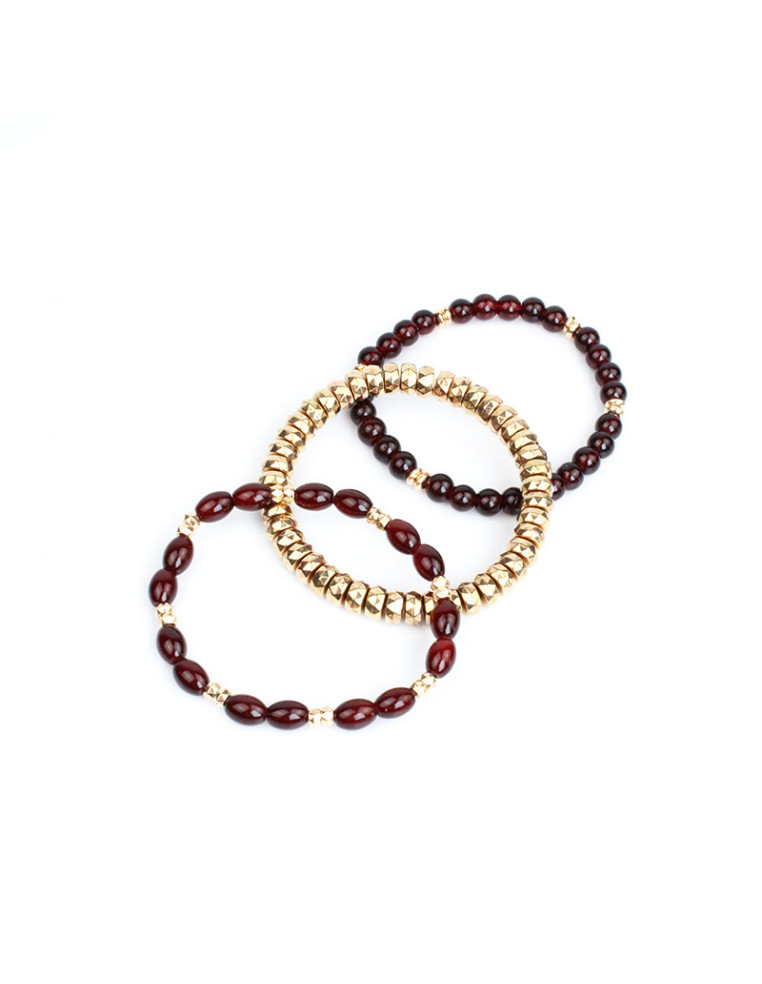 Set de tres pulseras elásticas con cuentas de vidrio exclusivas y dijes de CCB pasantes.
