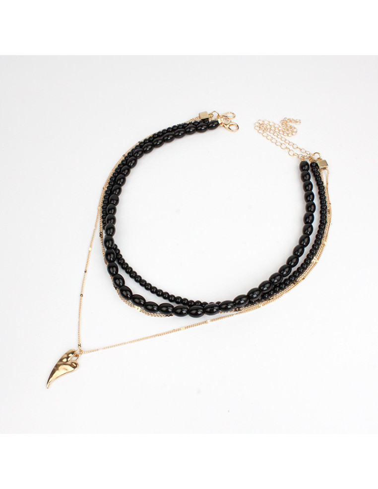 Set de dos collares de cadena diferenciada intervenida con dije en forma de corazón y lenga flexible con cunetas de vidrio exclusivas.