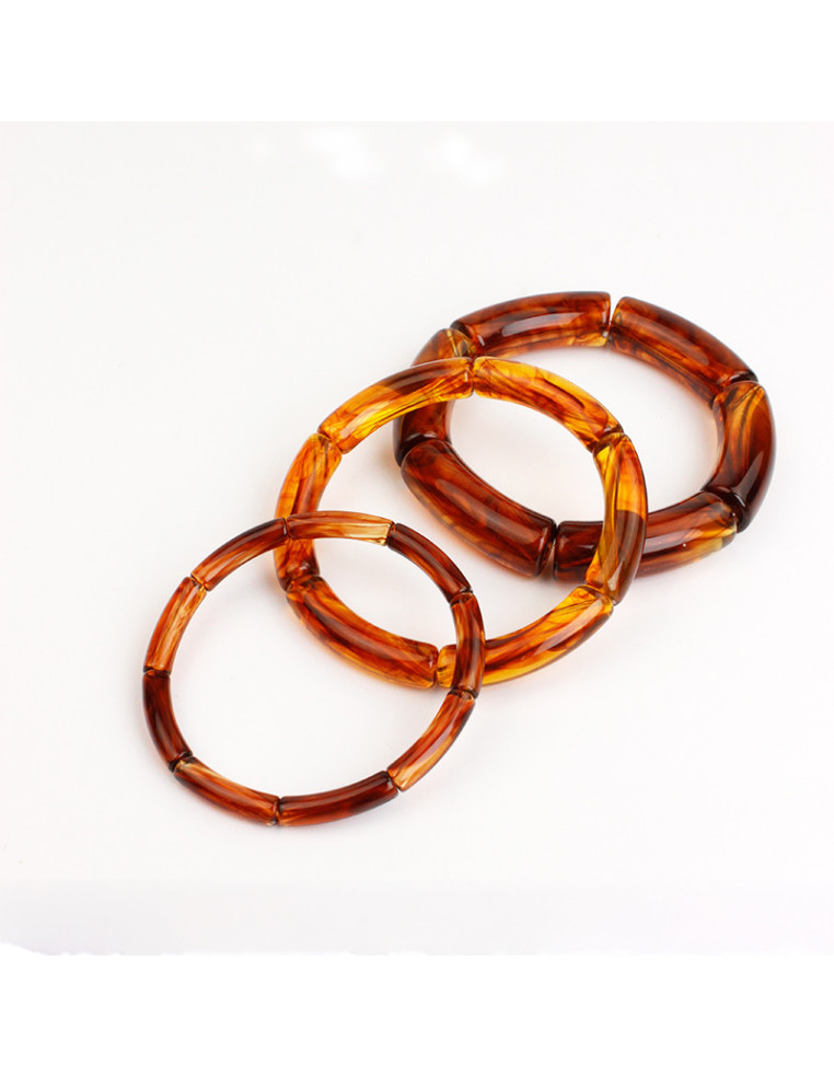 Set de tres pulseras elásticas con tubitos de acrílico.