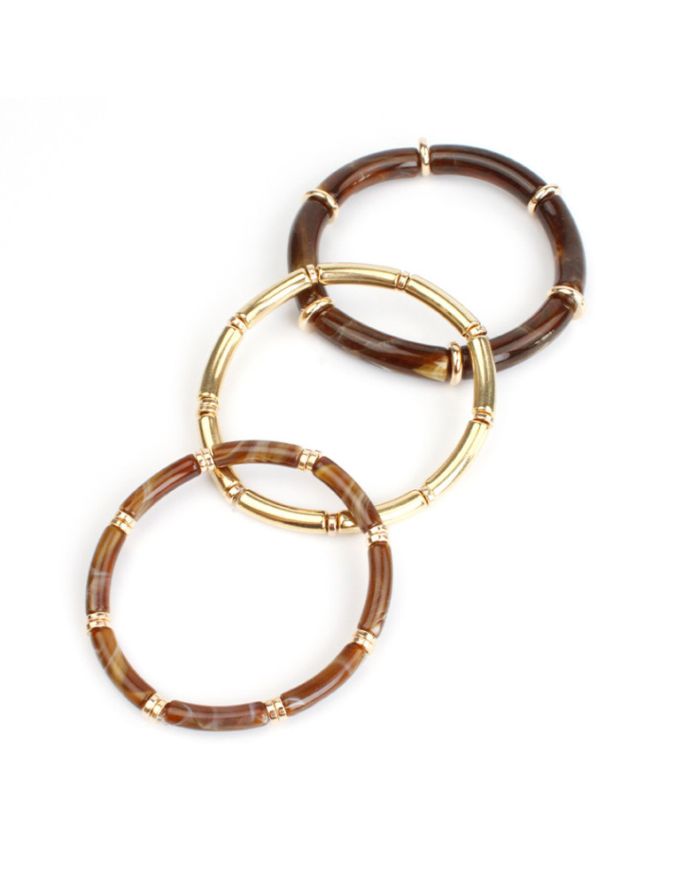 Set de tres pulsera elástica de tubitos de acrílicos de diferentes tamaños.
