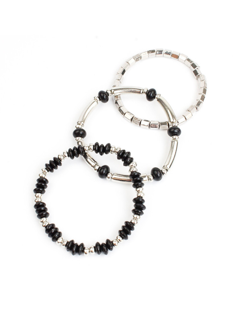 Set de tres pulsera elástica con piezas de acrílico y tubitos de ccb.