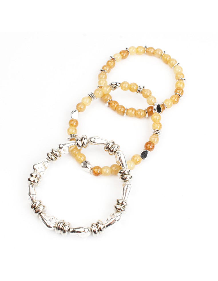 Set de tres pulsera elástica de piezas de vidrio.