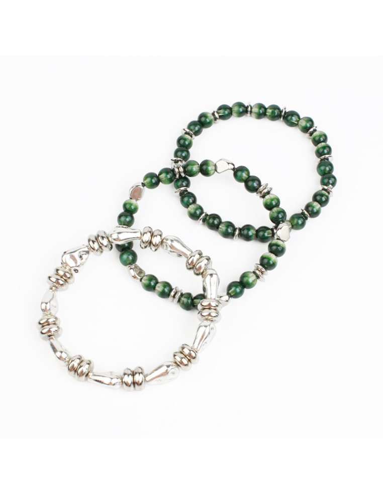 Set de tres pulsera elástica de piezas de vidrio.