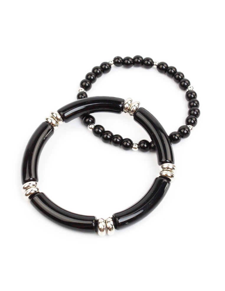 Set de dos pulseras elásticas de cuentas de acrílico, bolitas de vidrio y pasantes de CCB.