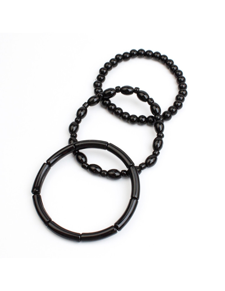 Set de tres pulseras elásticas de cuentas de acrílico y cuentas de vidrio.