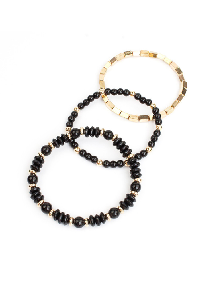 Set de tres pulseras elásticas de cuentas de vidrio y piezas pasantes de CCB.