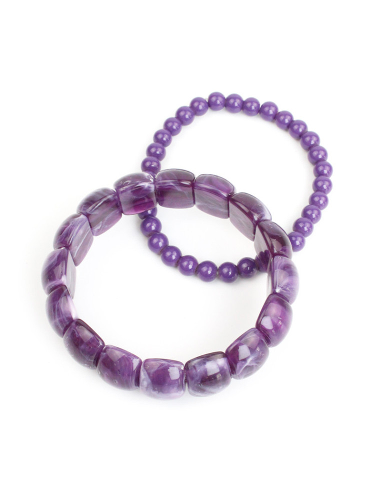Set de dos pulseras elásticas de piezas de vidrio y acrílico diferenciado.