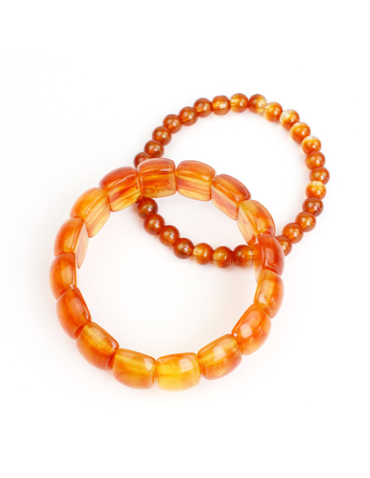 Set de dos pulseras elásticas de piezas de vidrio y acrílico diferenciado.