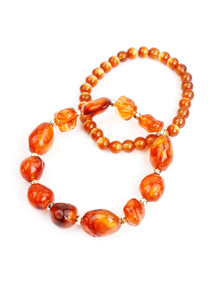 Set de dos pulseras elásticas de cuentas de acrílico, con pasantes de CCB y bolitas de vidrio.