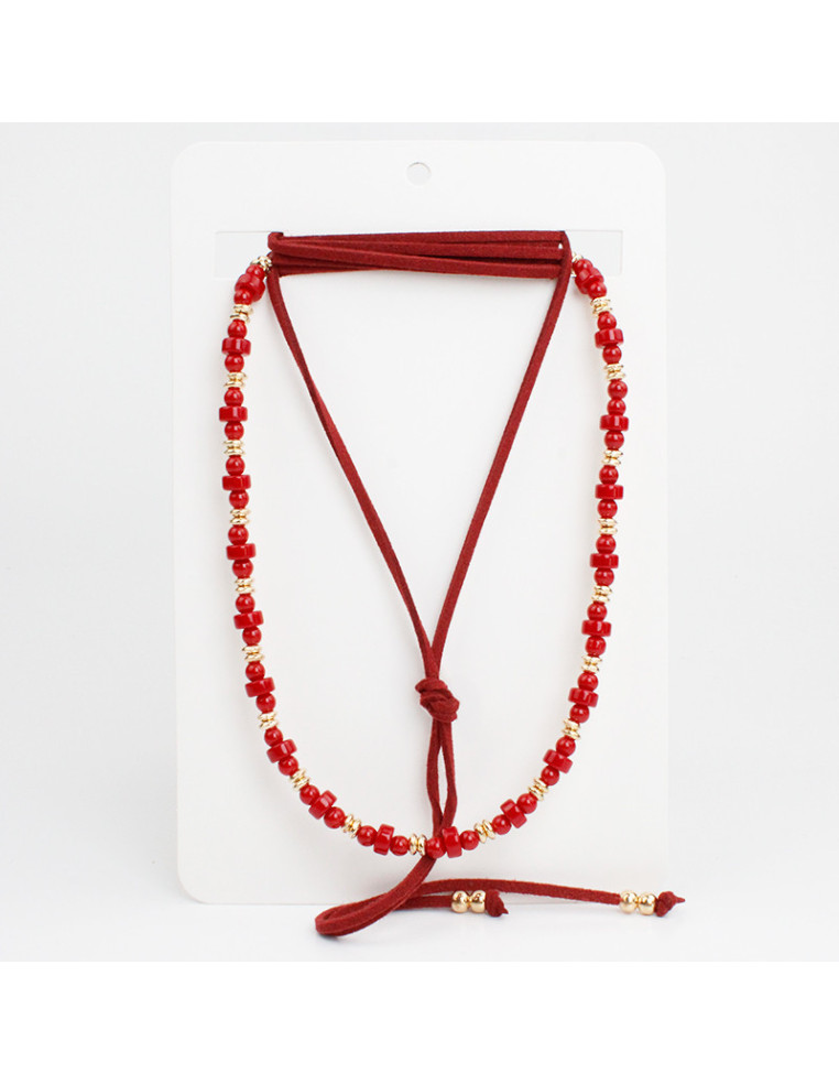 Set de dos collares de lenga flexible intervenida con cuentas de vidrio exclusiva y gamuza de múltiples vueltas con punteras en terminales.