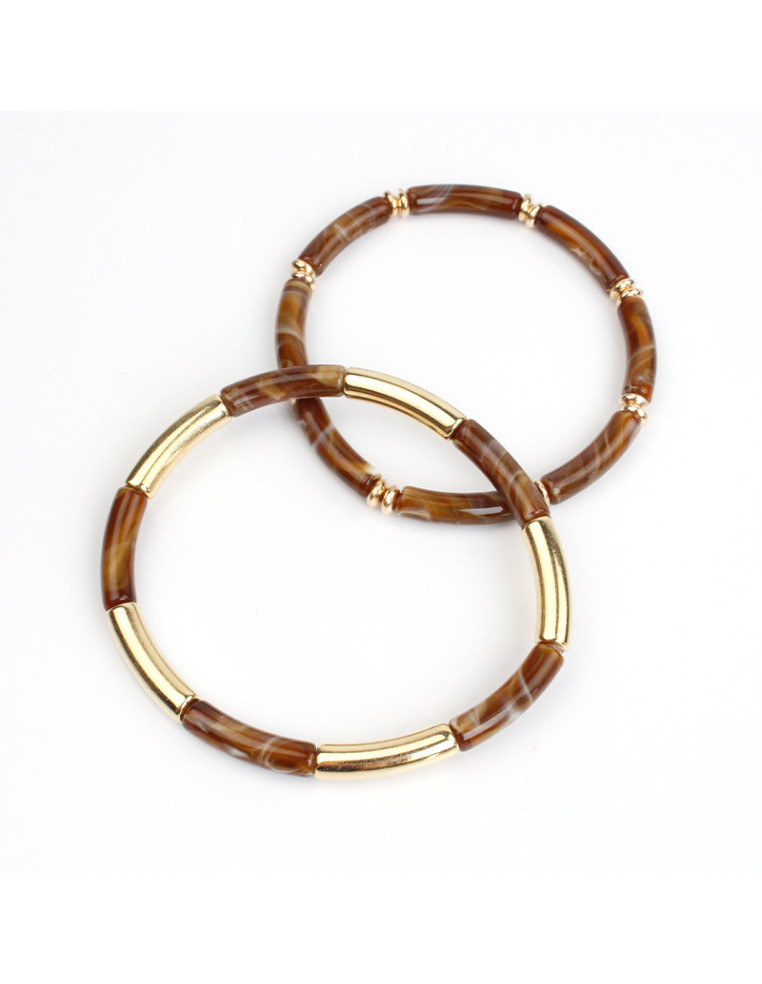 Set de dos pulseras elásticas intervenidas con dijes exclusivos de acrílico y piezas pasantes de CCB.