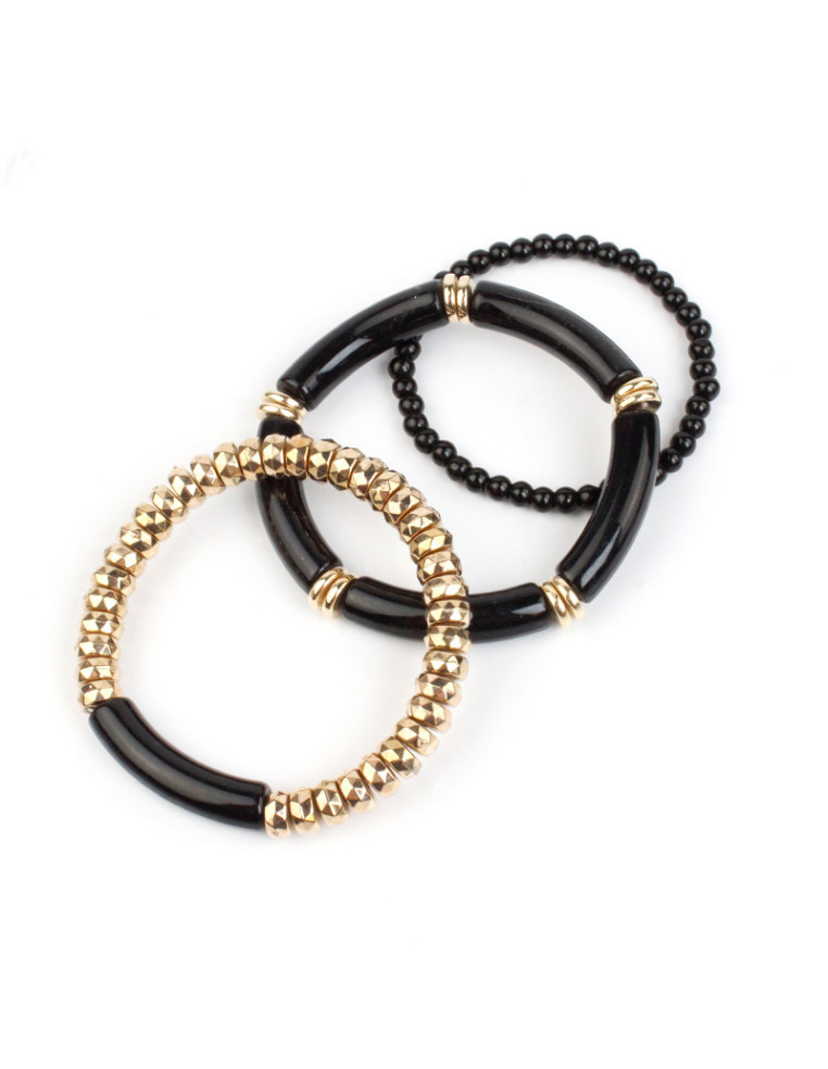 Set de tres pulsera elástica de piezas de acrílico combinadas con pasantes de CCB