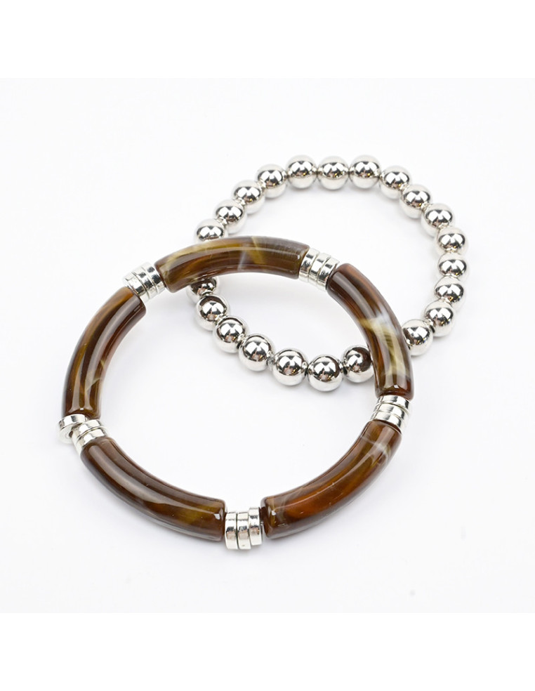 Set de dos pulseras elásticas de cuentas de acrílico y bolitas pasantes de CCB.