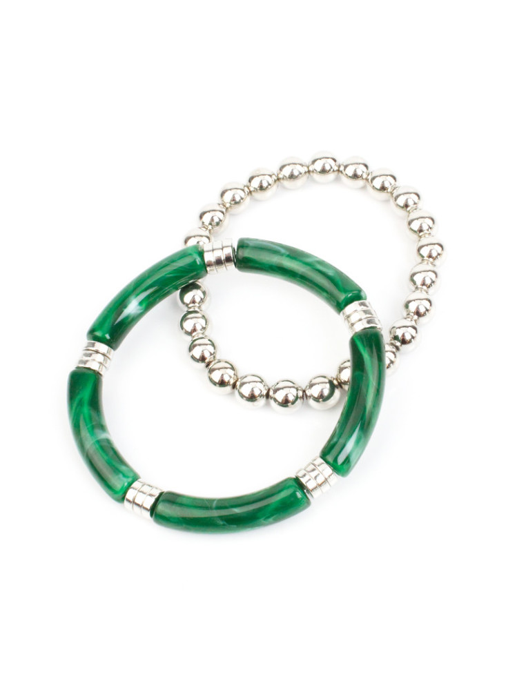 Set de dos pulseras elásticas de cuentas de acrílico y bolitas pasantes de CCB.