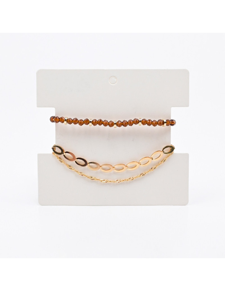 Set de dos pulseras, una de cadenas doble y otra elástica de rocas de cristal.