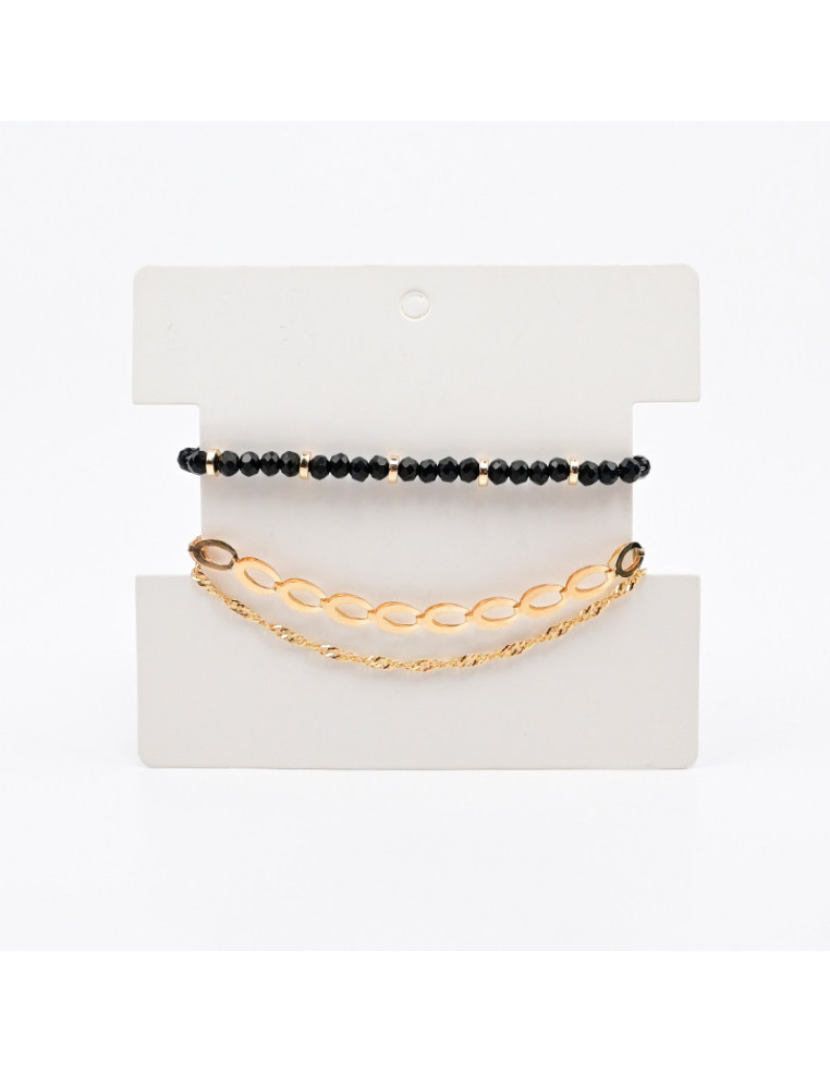 Set de dos pulseras, una de cadenas doble y otra elástica de rocas de cristal.