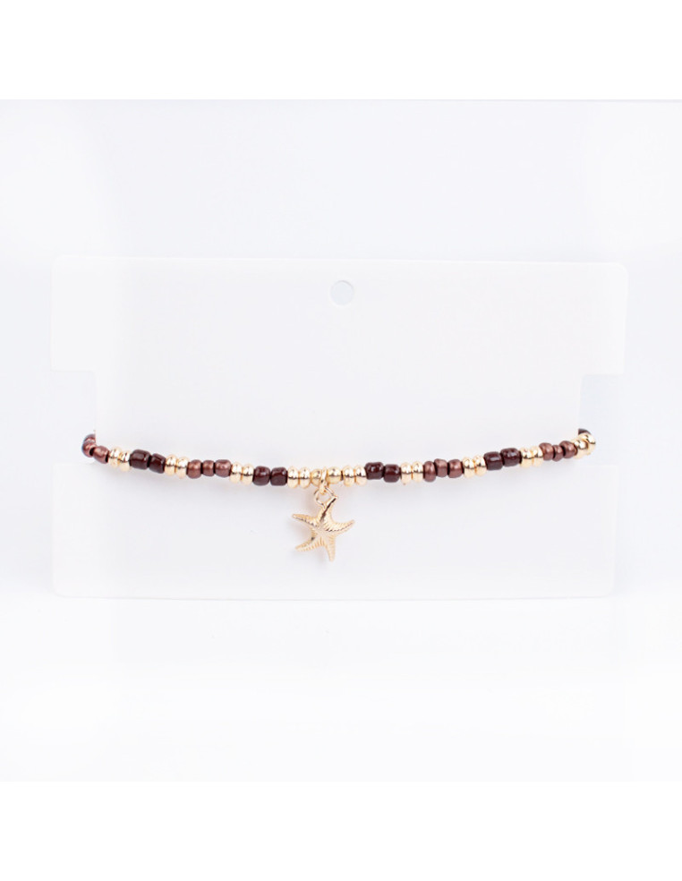 Tobillera elástica de mostacillas, combinadas con  separadores de CCB y dije exclusivo de fundición con forma de estrella de mar.
