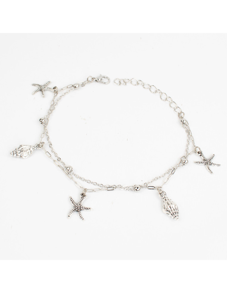 Tobillera de doble caída de cadenas diferenciadas, con dijes exclusivos de fundición marinos.