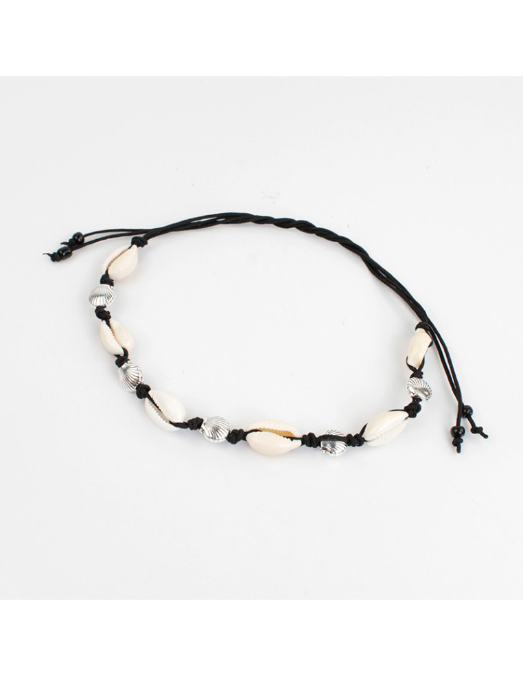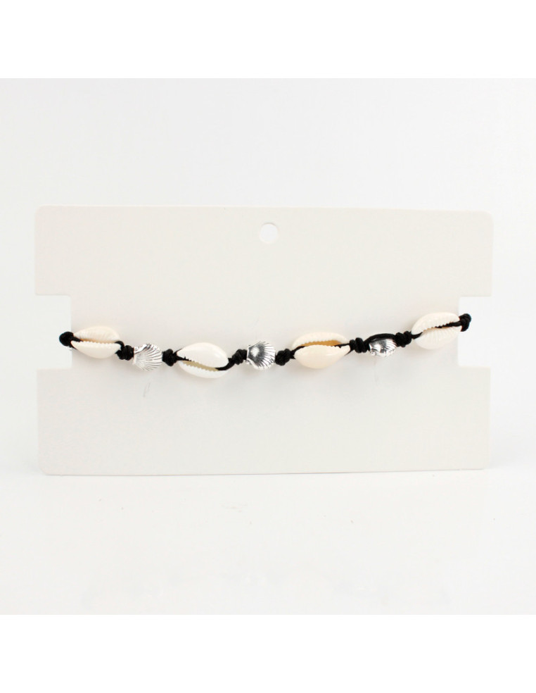 Tobillera de hilo, enhebrada con buzios y dijes marinos pasantes.