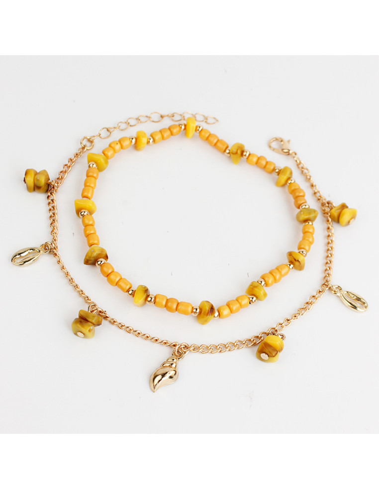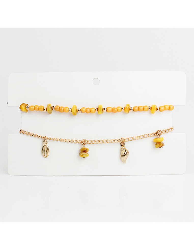 Set de dos tobilleras, una elástica de mostacillas combinadas con escallas, otra de cadena con dijes exclusivos de fundición y escallas de acrílico.