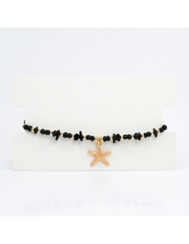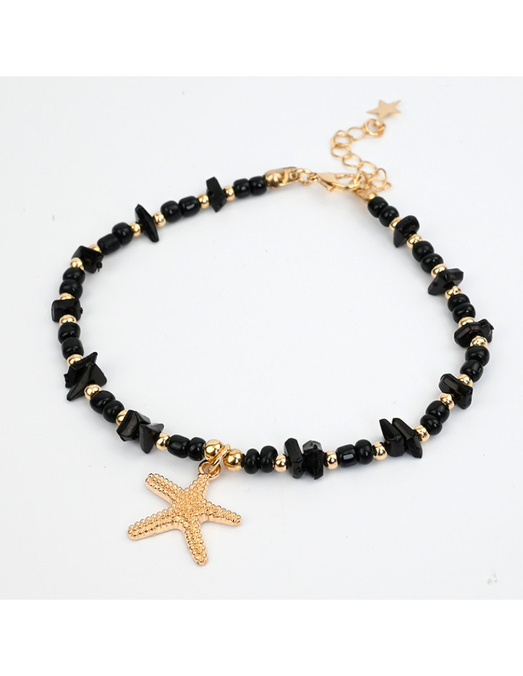 Tobillera de lenga enhebrada con escallas de acrílico combinadas con mostacillas exclusivas combinadas con separadores de CCB y dije marino.