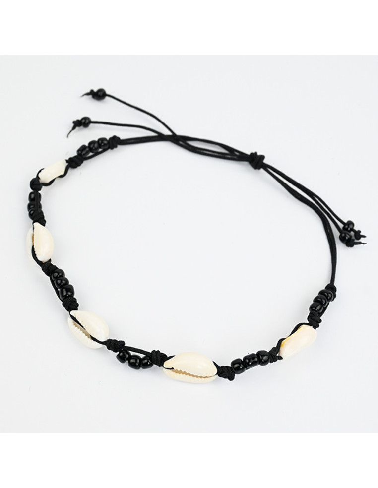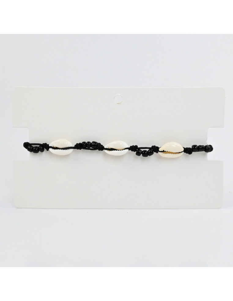 Tobillera de hilo, enhebrada con buzios naturales combinados con mostacillas.