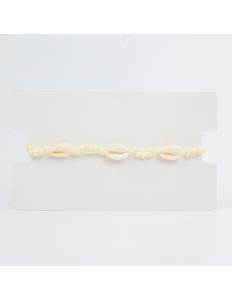 Tobillera de hilo, enhebrada con buzios naturales combinados con mostacillas.