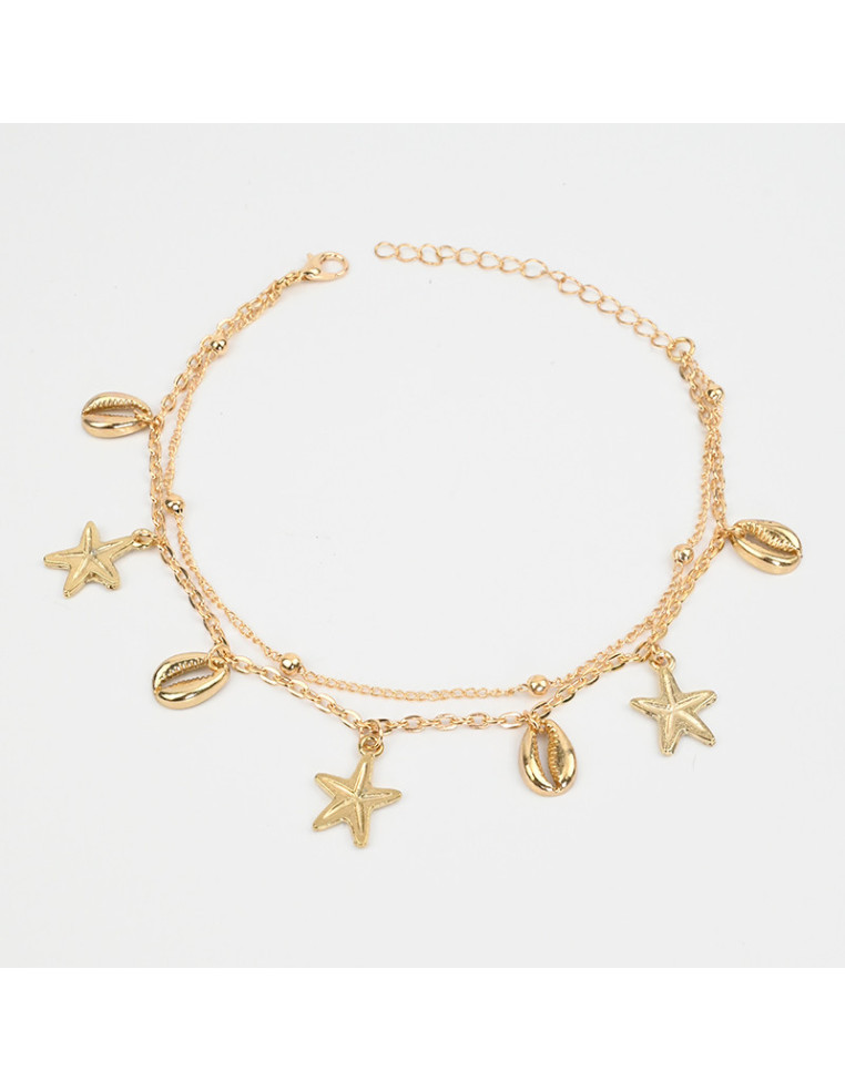 Tobillera de doble caída de cadenas diferenciadas con dijes exclusivos de fundición marinos.