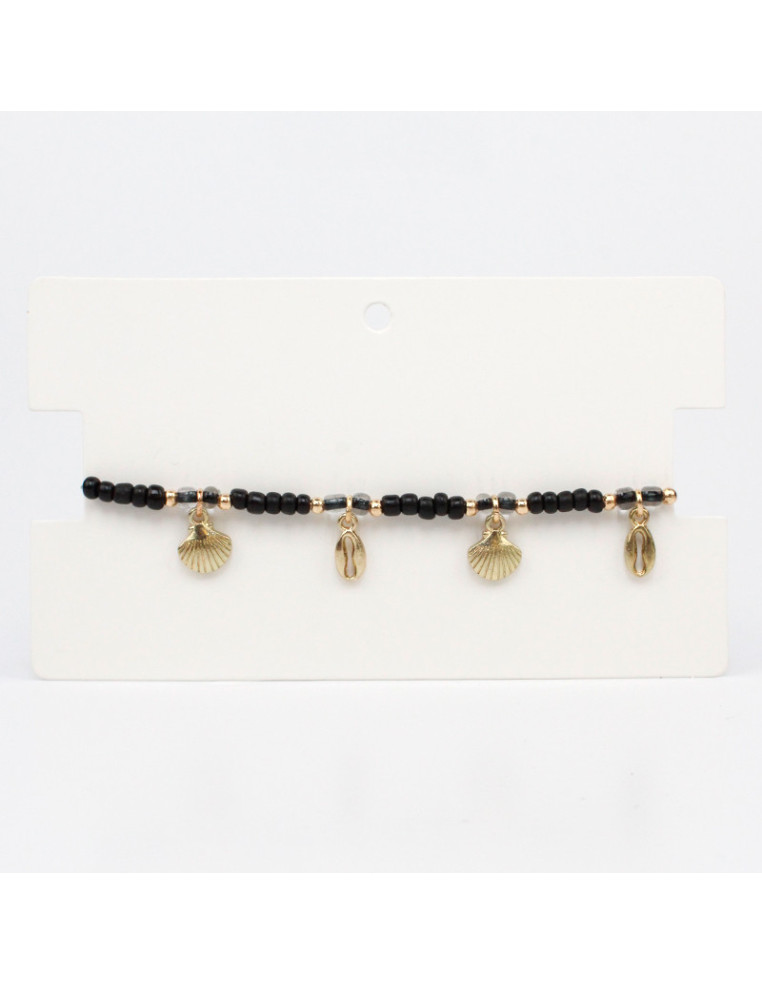 Tobillera elástica de mostacillas diferenciadas, combinadas con dijes exclusivos de fundición.
