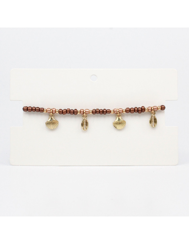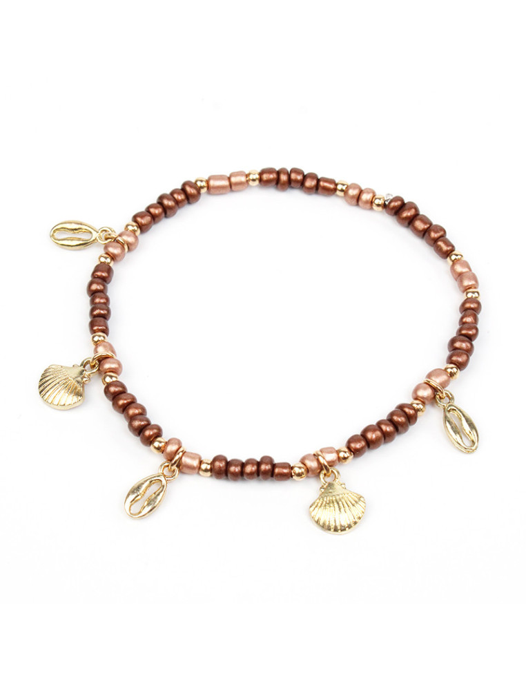 Tobillera elástica de mostacillas diferenciadas, combinadas con dijes exclusivos de fundición.