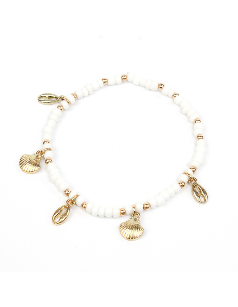 Tobillera elástica de mostacillas diferenciadas, combinadas con dijes exclusivos de fundición.